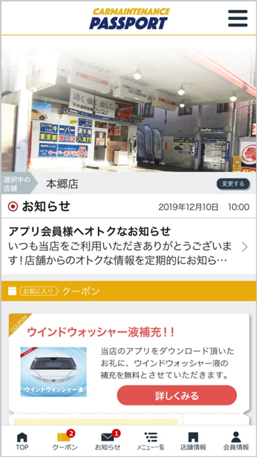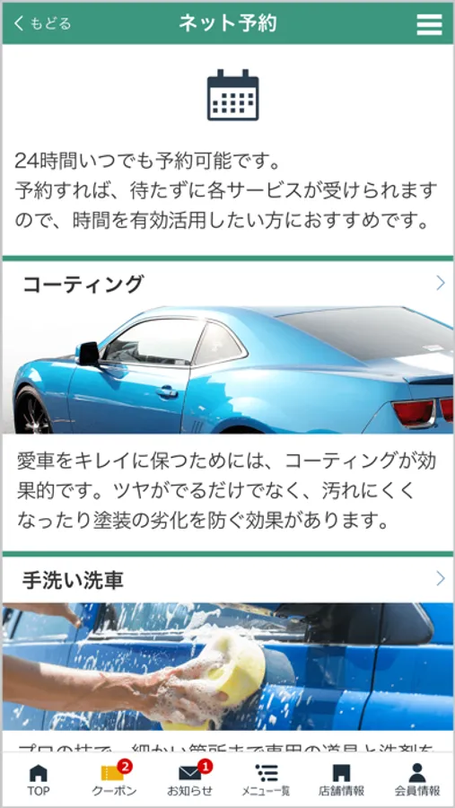 洗車・カーコーティングなどのご予約や、愛車のメンテナンス管理ができるアプリです。