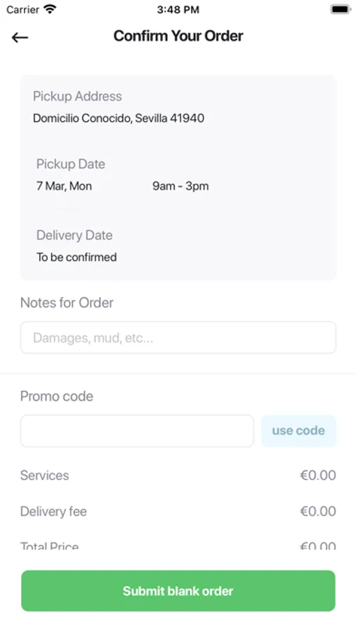 Specifications of your order: Tell us the specifications of how you want us to treat your garments directly in the APP.