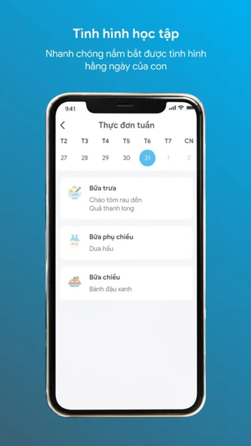 - Xem thời khoá biểu trong tuần, tháng của con mình, luôn cập nhật thời khoá biểu mới nhất.