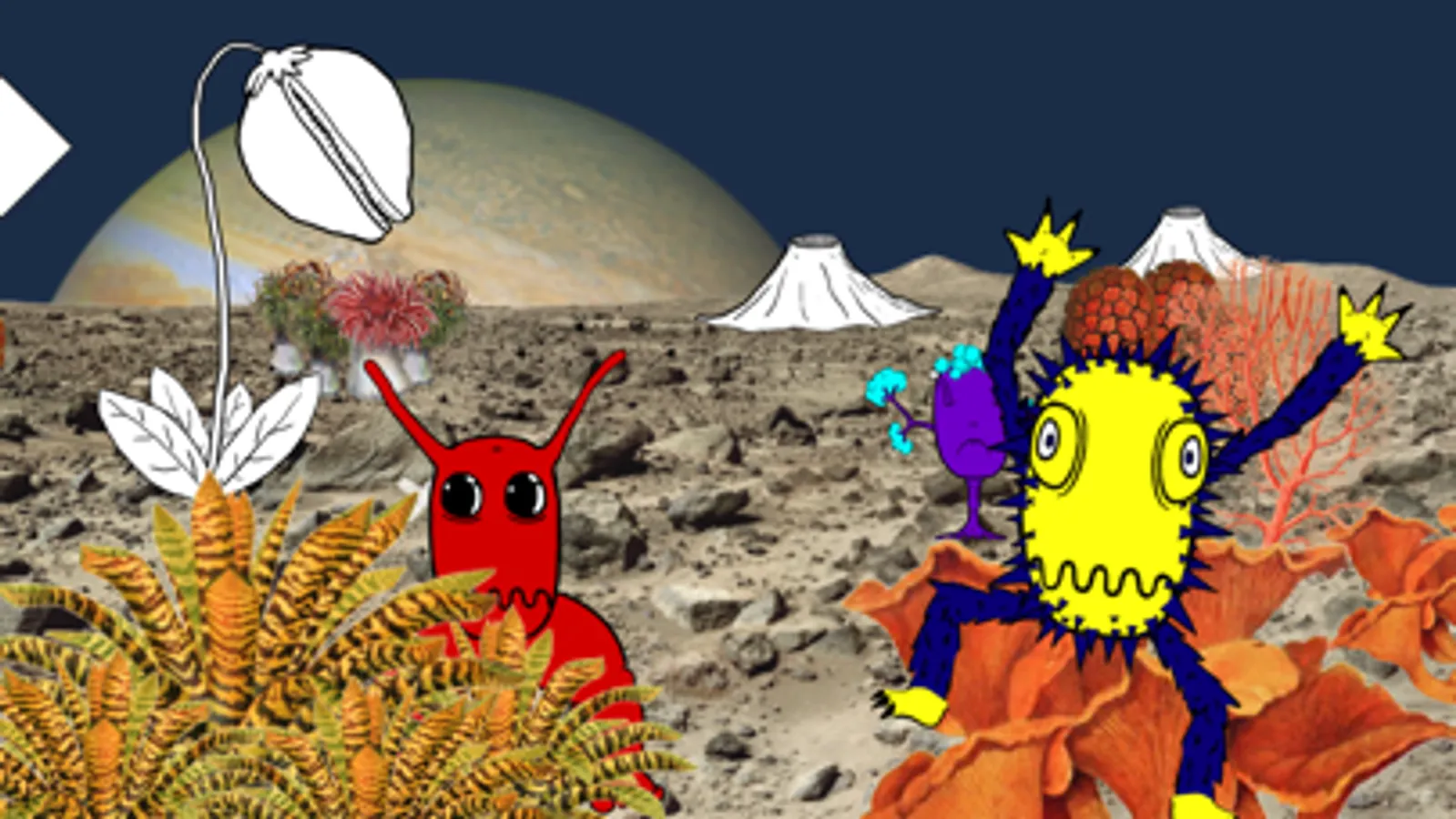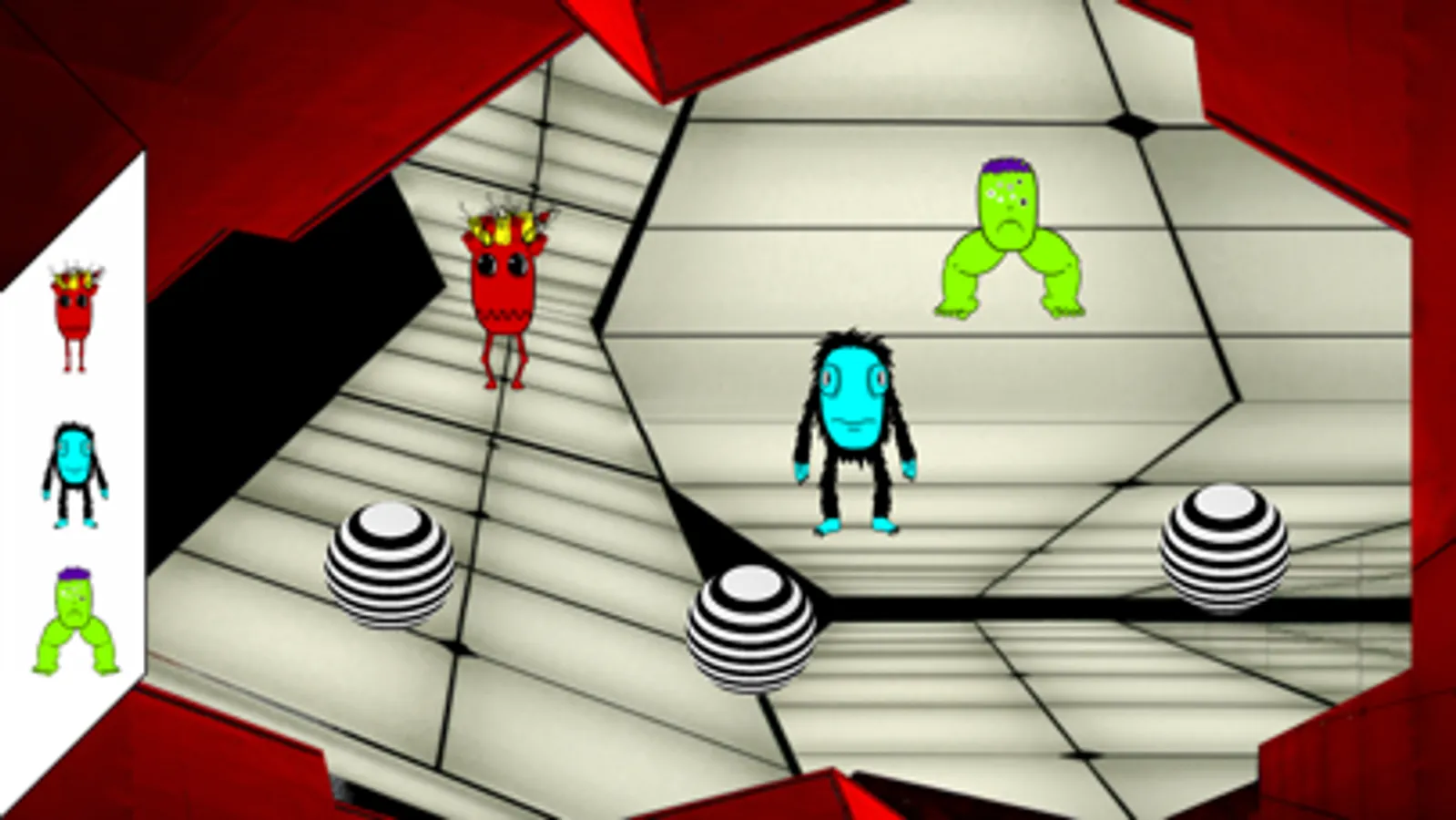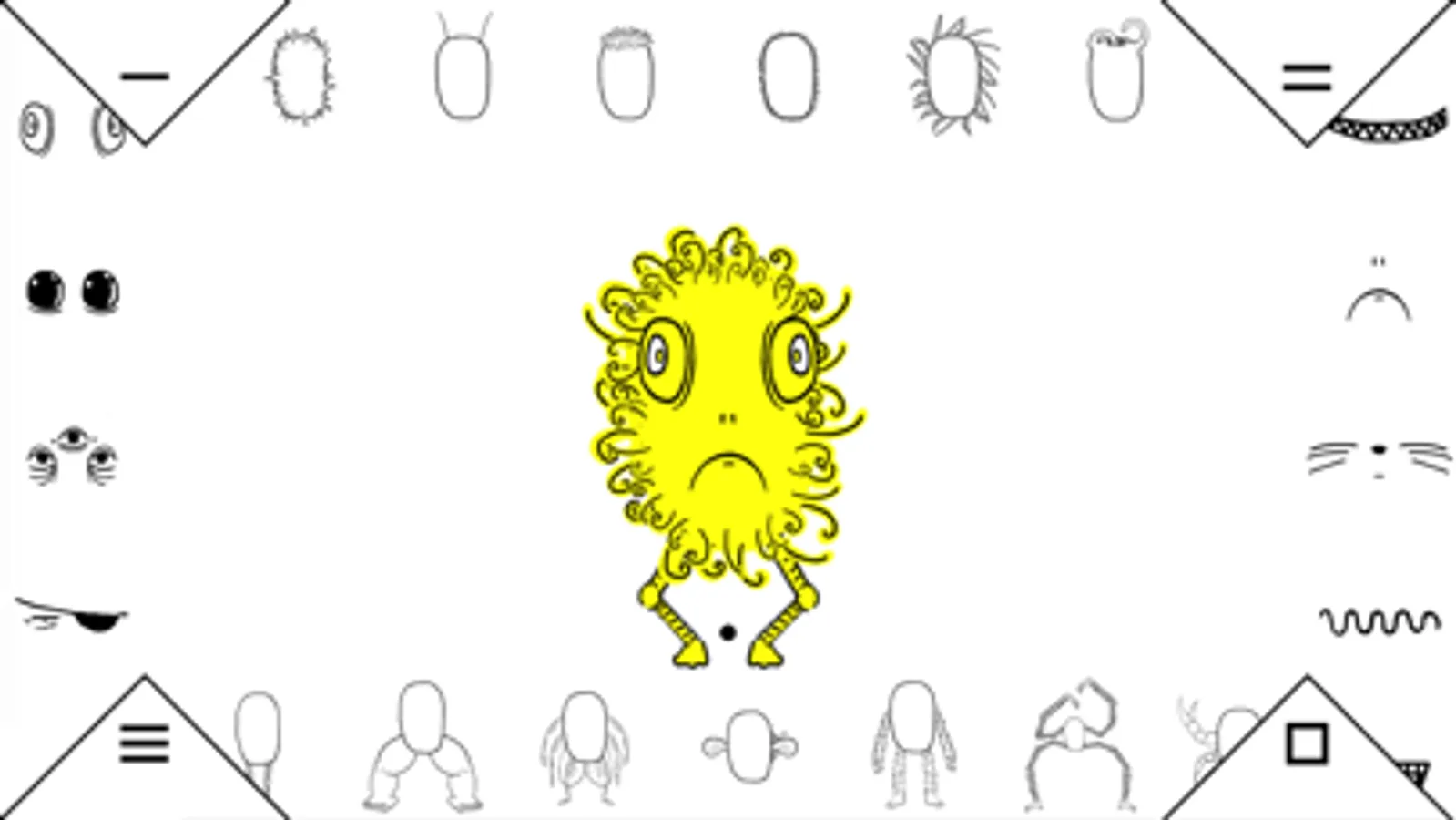 Build colourful CREATURES, by selecting from a variety of EYES, MOUTHS, HAIRSTYLES and LIMBS – all body parts are animated and express different emotions.