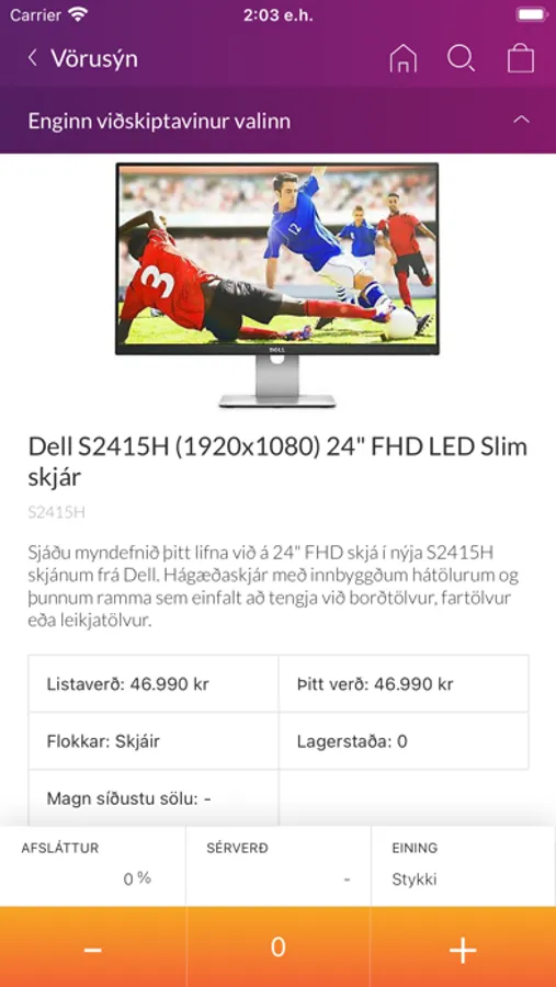 Lausn frá Advania sem auðveldar sölumönnum vinnu sína. Vörulistinn er vistaður í appi og sölumaðurinn getur á einfaldan hátt sýnt viðskiptavinum vörurnar ásamt vörulýsingum og öðru sem hann vill koma á framfæri. Sölumaðurinn skráir pantanir í appinu og uppfærist viðskiptakerfið jafnharðan. Til að hámarka virkni utan nets er mælst með því að nota iOS útgáfu 11 eða nýrri.