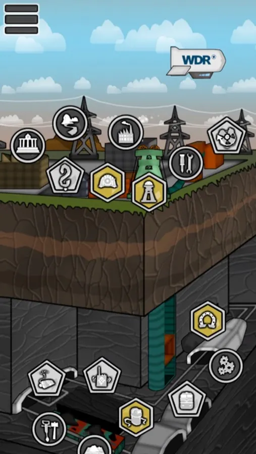 Die letzten Steinkohle-Bergwerke sind geschlossen, in der App lebt die spannende Welt der Bergleute unter Tage weiter. Fahre mit dem Förderkorb unter Tage, lerne die verschiedenen Maschinen und Begriffe des Bergbaus kennen, bohre und sprenge Löcher, sorge dafür, dass die Kohle abtransportiert wird und sorge für gute Luft im Bergwerk. Kümmere dich um das Grubenpferd Tobias und gestalte eine Halde zu einem Park um. In einem Kulturzentrum kannst du Andenken an den Bergbau sammeln. Im Laufe des Spiels lernst du den Alltag, die Arbeit und die Begriffe der Kumpel kennen und kannst spätestens beim Abschluss-Test beweisen, dass du weißt, was ein Arschleder ist und warum es gar nicht peinlich ist.