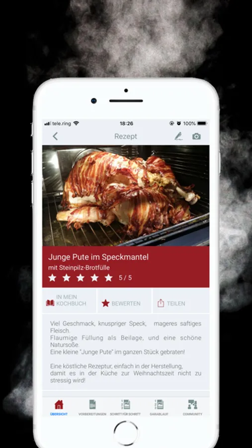 • Du kannst Rezepte bewerten und Bilder hochladen, wenn du ein Rezept nachgekocht hast