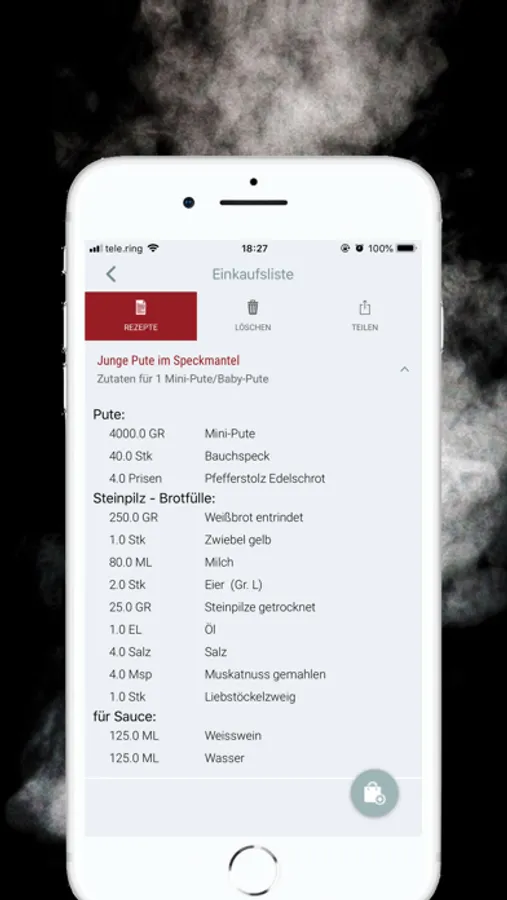 • Speichern von Lieblingsrezepten in "Deinem" Kochbuch und Erstellen einer Einkaufsliste für ein Rezept