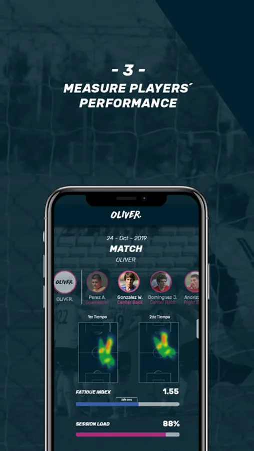 OLIVER is a platform for football teams based on data that is collected by a low-cost GPS, processed by Artificial Intelligence algorithms who convert them into valuable information to measure performance, prevent injuries and evolve the game of players and teams.