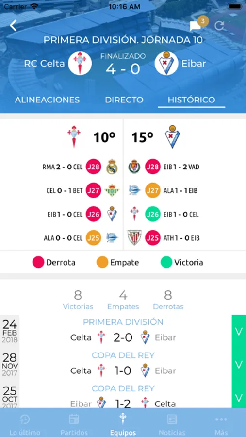 - Calendario completo con los partidos del primer equipo y La Cantera. Con todos los detalles y estadísticas, cuándo serán y cuánto quedaron.