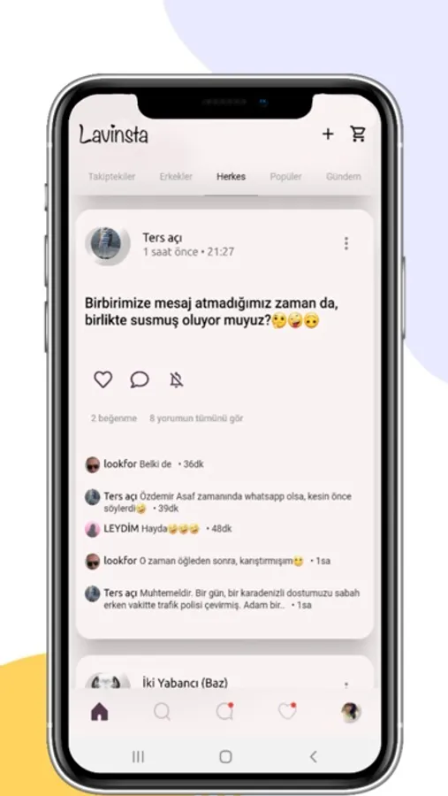 Turkey's most powerful and joyful meeting app Lavinsta brings you new people to meet. You can easily search more people around you. İf you give specific and detailed information about you in your profile, they may find you first! Simple usage, big amount of users, fast and affective chat, and so much fun waiting you.