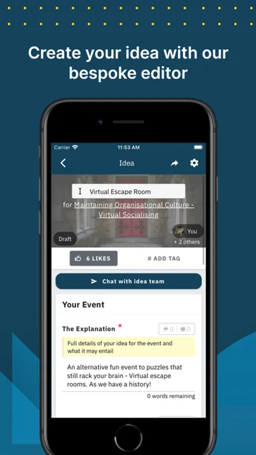 2. Start creating your idea using our fantastic idea creation toolkit.