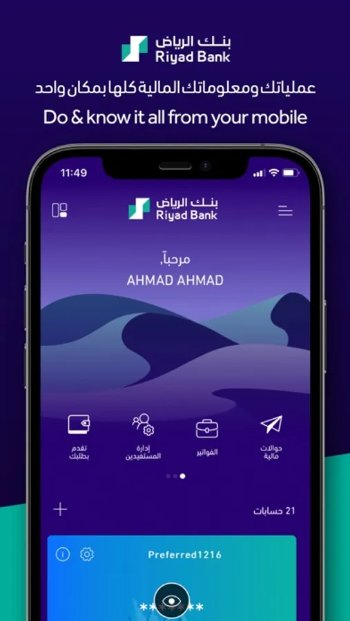 Riyad Bank Mobile application is designed to provide you with the best experience, in addition to many advantages and services that contribute to facilitating your banking transactions. It also allows you to carry out your banking transactions directly from your mobile at anytime and anywhere, My bank .. is always with you.