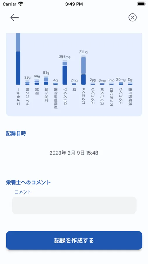 画像を撮影するだけで食事記録の作成ができ、それに対して管理栄養士からアドバイスをもらうことができます。