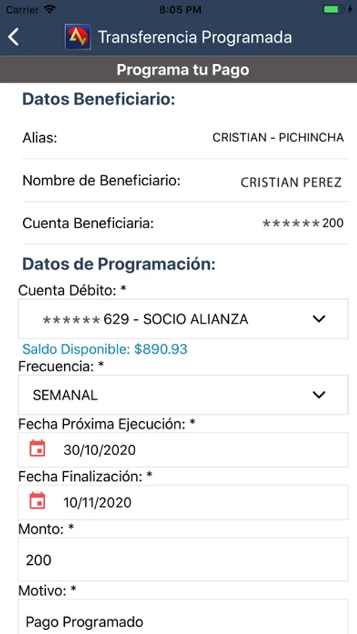 * Crear y Realizar Transacciones de Cuentas Frecuentes.