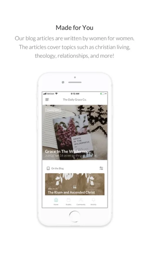 The Daily Grace app is designed to equip women to know and love God's Word. This app created by The Daily Grace Co. has been created to help women cultivate their walk with God through intentional Bible study and deep community. In the app we combine the beauty of encouraging and theologically rich Bible studies from The Daily Grace Co. with access to our amazing community of women who are seeking God together each day.