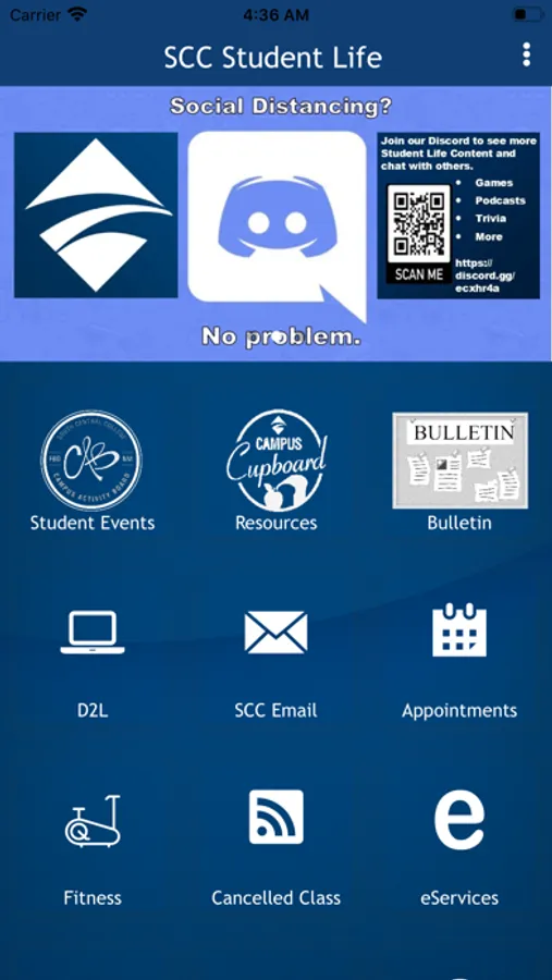 The South Central College Student Life application connects students to on-campus events and news. Students can use the app to connect to their campus resources such as D2L, and e-mail, and e-Services.