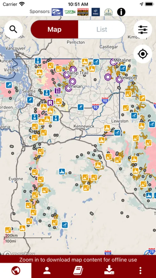 Snow NW has all the information you need for your favorite winter sports. Snowmobilers, Nordic skiers, snowshoers, fat bike enthusiasts and even dog sledders can use the app to find and navigate their winter adventure. With over 11,000 miles of groomed trails in Washington, Oregon and Western Idaho, plus marked snowshoe and nordic routes, ungroomed snowmobile routes recommended by local clubs, recreation roads and even summer trails, you are sure to find a place for fun in the snow. Planning your trip, the app has all of the sno-parks, other trail access, winter campgrounds, snow play areas, shelters and camping cabins. Click on any point, trail or area to get more information including what sports are allowed on the trails, what pass is required at the trailhead, what facilities are available, links to the avalanche forecast covering each recreation area, recreation land information and rules. The maps even show the Snotel monitoring sites with a link to the current readings so you can check the snow depth before heading out. Use the filters and search functions to find the perfect destination or to find a business that has what you need. While you are on the trail you can use your GPS to plot your location and navigate even without cell service, just make sure you download the regions before you hit the trail. Snow NW is the best app to navigate winter in the Pacific Northwest.