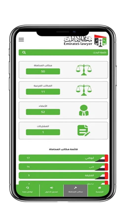 تطبيق إماراتي قانوني يعرض اسماء المكاتب التي تشغل أعمال المحاماة والإستشارات القانونية في دولة الإمارات العربية المتحدة إضافةً إلى أنشطة أخرى تقدمها المكاتب مثل: التحكيم والتوفيق والمصالحة والتدريب الميداني، ويهدف التطبيق لخدمة فئة كبيرة من المجتمع، حيث أنه يسهل عملية الوصول إلى مكاتب المحاماة عبر التواصل معهم وفق البيانات المضافة من قبل كل مكتب