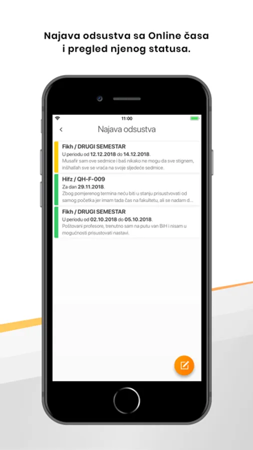 - Najava odsustva (pregled i slanje odsustava sa nastave)