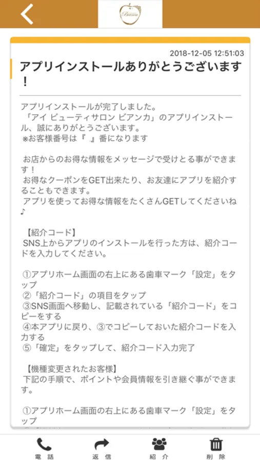 マツエクビアンカのアプリをSNSを通じてお友達に紹介する事ができます。