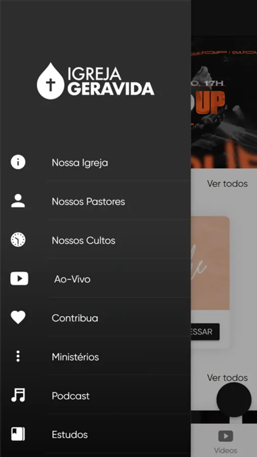 Aplicativo Oficial da Igreja Gera Vida conta com as seguintes funcionalidades:
