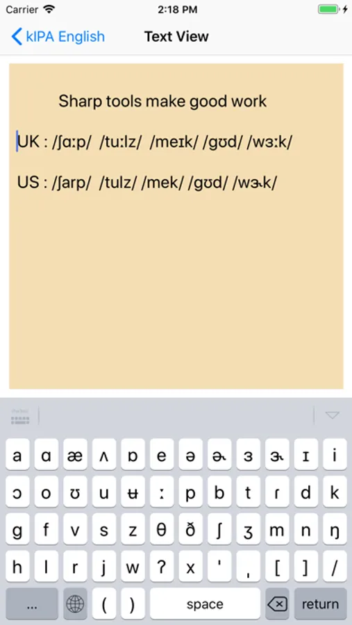 The kIPA English is a Keyboard Extension, designed for the user who needs to enter English Phonetic Symbols.