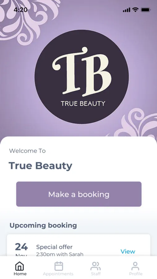 The True Beauty app makes booking your appointments and managing your loyalty points even easier. You're just a few taps away from feeling good and looking great!