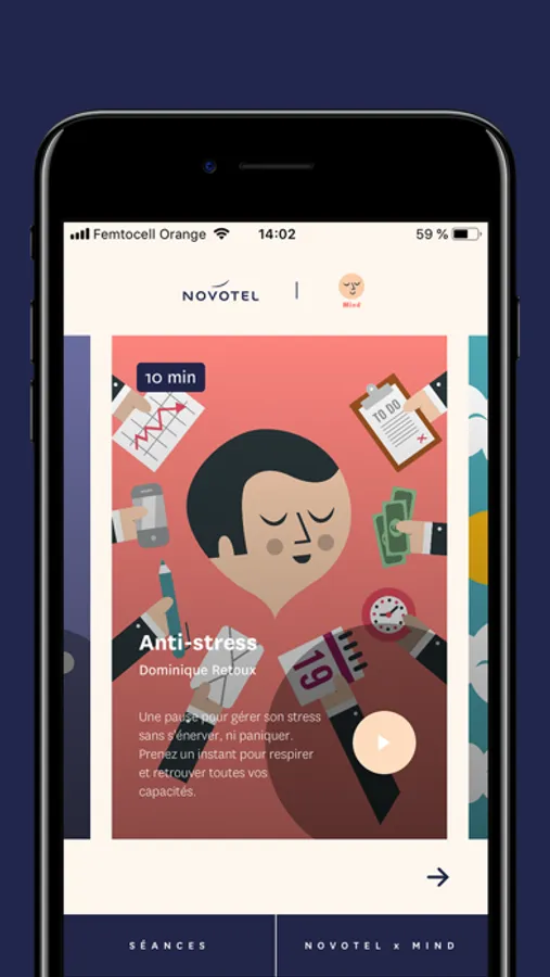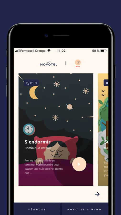 Novotel et l'application de méditation Mind ont conçu 6 séances guidées de méditation de pleine conscience, proposées gratuitement sur cette application.