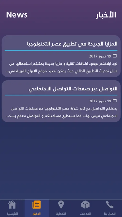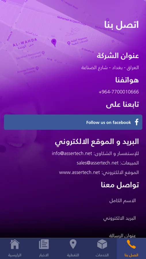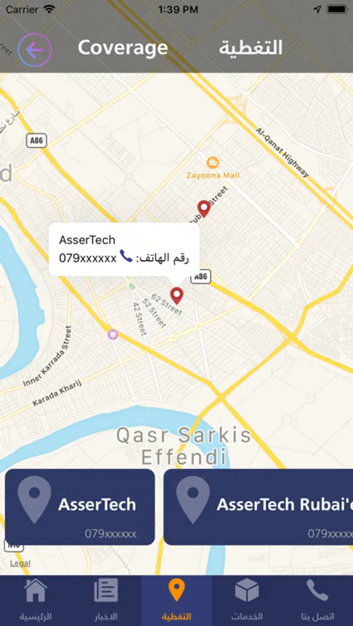 AsserTech App is used to locate the nearest tower in your coverage area, In addition it provides news service and you can explore the packages that are provided from AsserTech Internet Services Company in Baghdad and all other provinces.