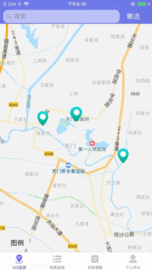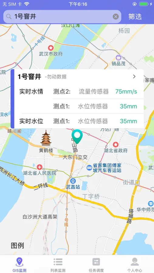 兴图天建定制开发的移动终端APP主要包括个人中心、GIS监测、列表监测及任务调度实现住建委和住建委各直属单位已有信息的编目与信息展现等多个功能板块