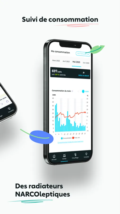 Cette application est uniquement liée à l’offre Narco et ne fonctionne qu’avec l’installation du boitier de l’offre. Avec le boîtier, vous pouvez contrôler votre chauffage électrique au doigt et à l’œil grâce à la fonctionnalité de mise en sommeil des radiateurs et suivre votre consommation en temps réel (à 10 minutes près).