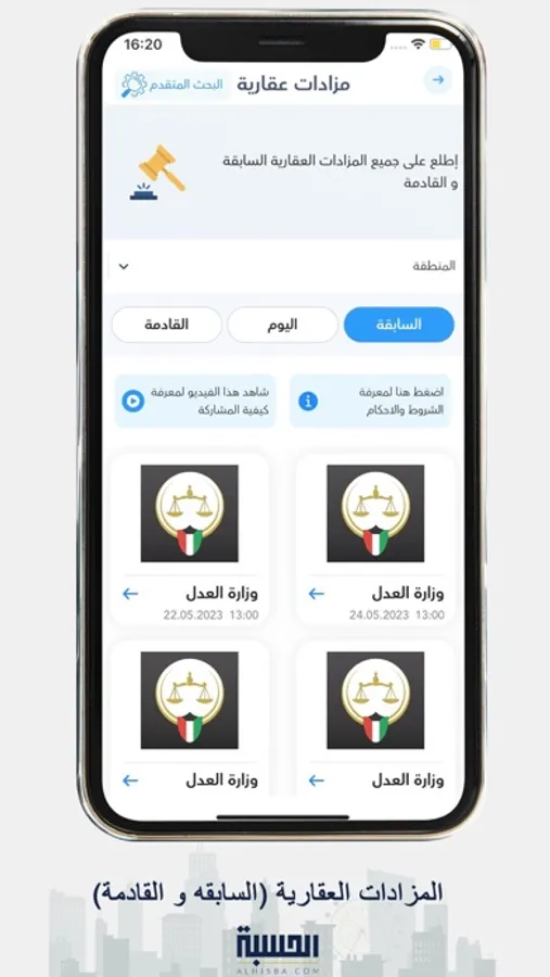 • تفاصيل المزادات العقارية (التاريخية والقادمة)