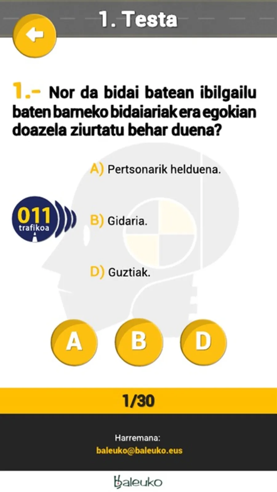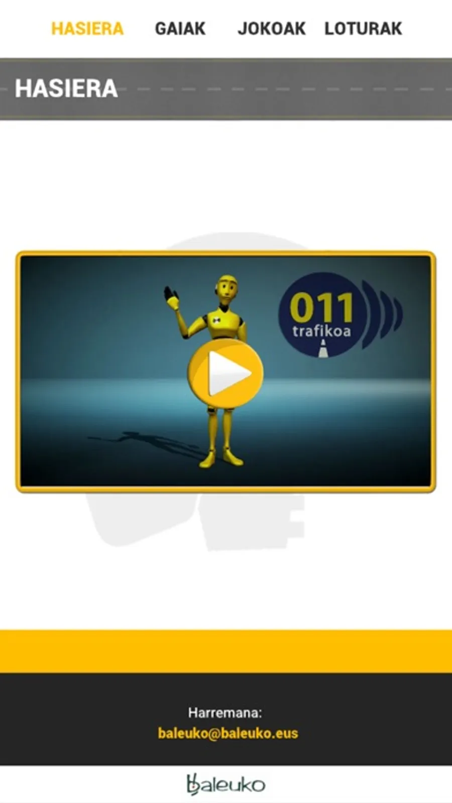 Dummy izeneko pertsonaiaren plataforma edo gunea da app hau. Bertan, erabiltzaileek, era elkarreragilean (bideo azalpenak, jokoak, testak...) trafikoari eta bide-hezkuntzari lotutako edukiak euskara hutsean landu ahal izango dituzte. Adibidez, gidabaimena ateratzeko prestatu, galdetegiak erantzun, aholkuak jaso edota azterketa psikoteknikoan gainditu beharreko ariketetan trebatu ahal izango dute.