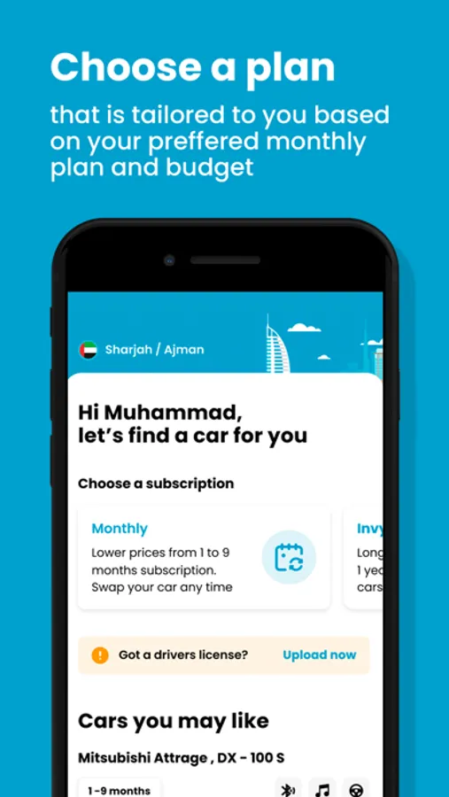 2. Subscribe to a monthly car rental: 1 month, 3 months, 6 months, or 9 months