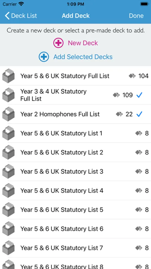 The App comes with pre-made lists of words for different primary school years including the UK National Curriculum. All of the Statutory Key Stage 1 & 2 (Year 3&4, Year 5&6) are included for free.