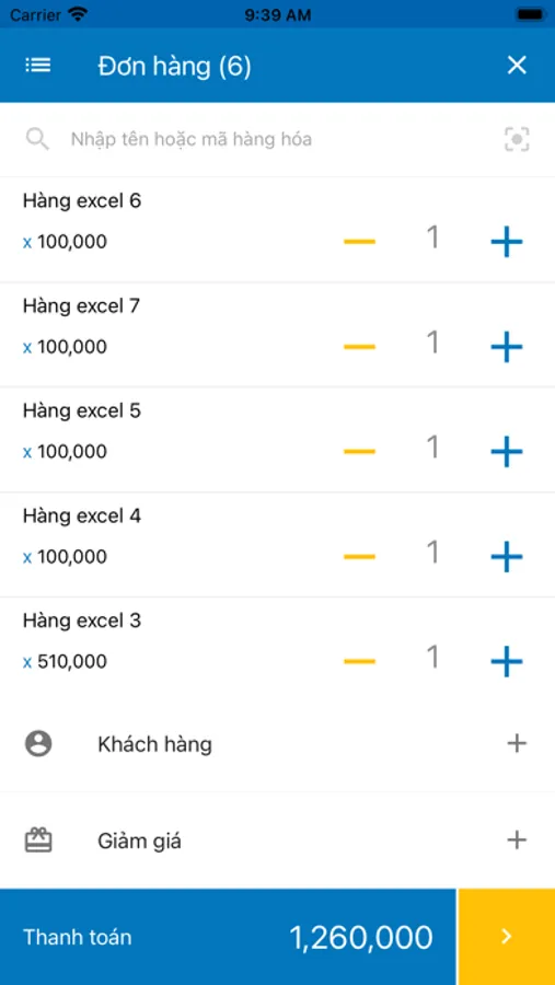 - Quét mã vạch hàng hóa từ camera của điện thoại/tablet