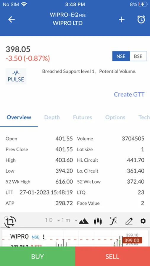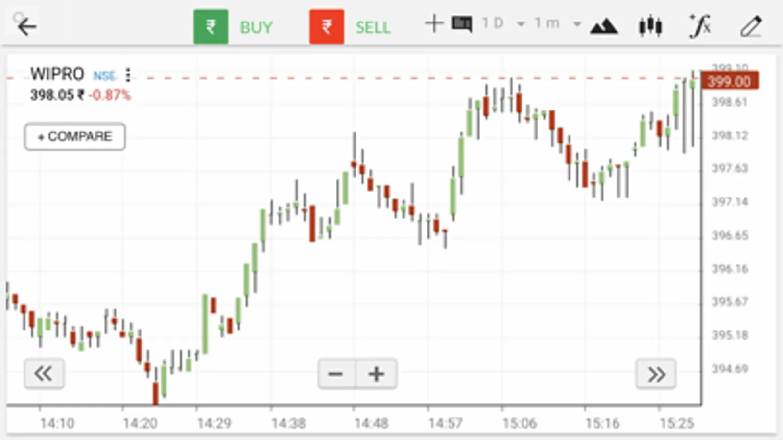 · Intraday Chart with technical indicator and buy/sell facility from chart.