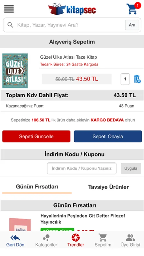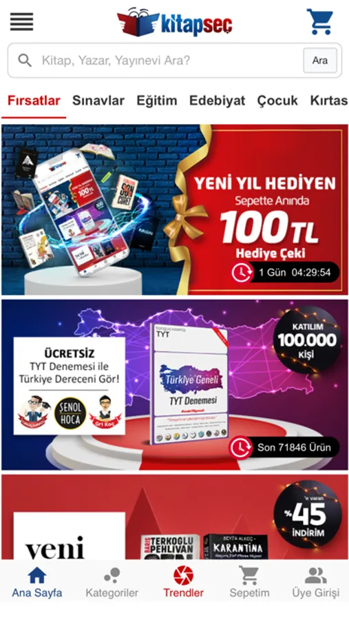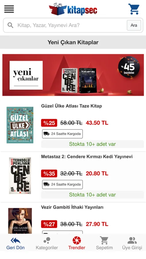 Mobil cihazlarınızla kusursuz bir uyum içerisinde çalışan Kitap Seç aplikasyonunun ‘’Haftanın Trendleri’’ kategorisi ile tanıştınız mı? Bu hafta en çok sepete eklenen ve satın alınan ürünleri inceleyin. Dip fiyatları kaçırmamak için ‘’Haftanın Fırsatları’’ listesini inceleyebilirsiniz.