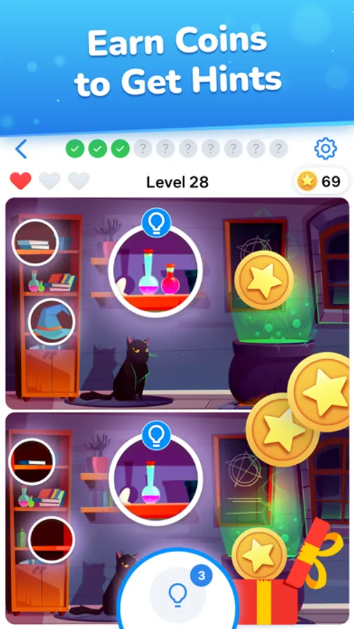 - Become a professional finder of differences by solving hard and easy levels of the picture game.