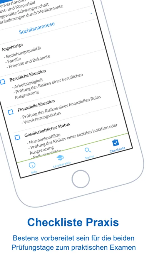 PflegeExamen ist eine mobile eLearning Lösung für Auszubildende und Praktizierende in Gesundheitsberufen, insbesondere in der Gesundheits- und Krankenpflege. Geeignet zum Lernen, Prüfen und Nachschlagen von Inhalten des Lehrplans in Ergänzung zum Unterricht in den Pflege- und Medizinalfachschulen. Ziel ist die Erleichterung des Lernens für die Klausuren und der staatlichen Prüfung ("Examen") sowie Auffrischung und Erweiterung des Wissenstandes in der Praxis