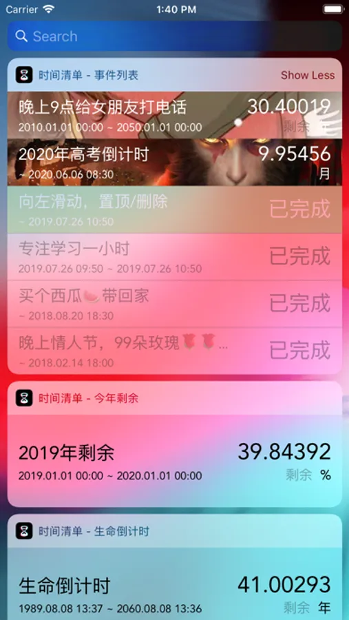 - 独立的生命倒计时和年度剩余,无形中提醒着您时间如斯夫,不舍昼夜