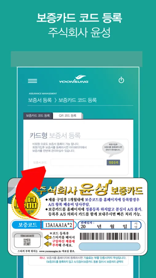 보증카드 등록 및 관리 A/S 접수 현황 안내