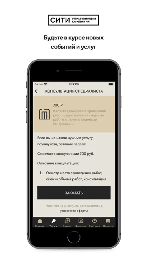 - подробно узнавать о всех видах сервиса УК «Сити»