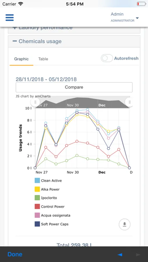 • Chemical consumption: real-time and historic data helps manage daily usage as well as identifying improvements that can be applied remotely