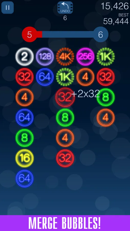 Shoot the bubbles and merge same numbers to get 2048 and higher tiles.