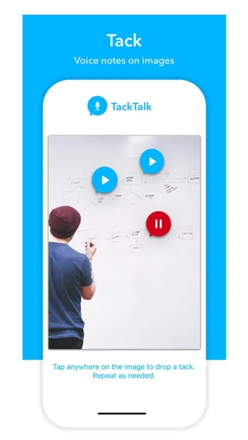 Upload a document, such as a pic, jpg, pdf, png, or gif and tap anywhere on the document to drop specific audio recordings to reference what you want. An example might be if someone sends you a pic of a sketch, instead of commenting by texting layers or drawing over the document you could tap in specific spots to leave your own audio comments.
