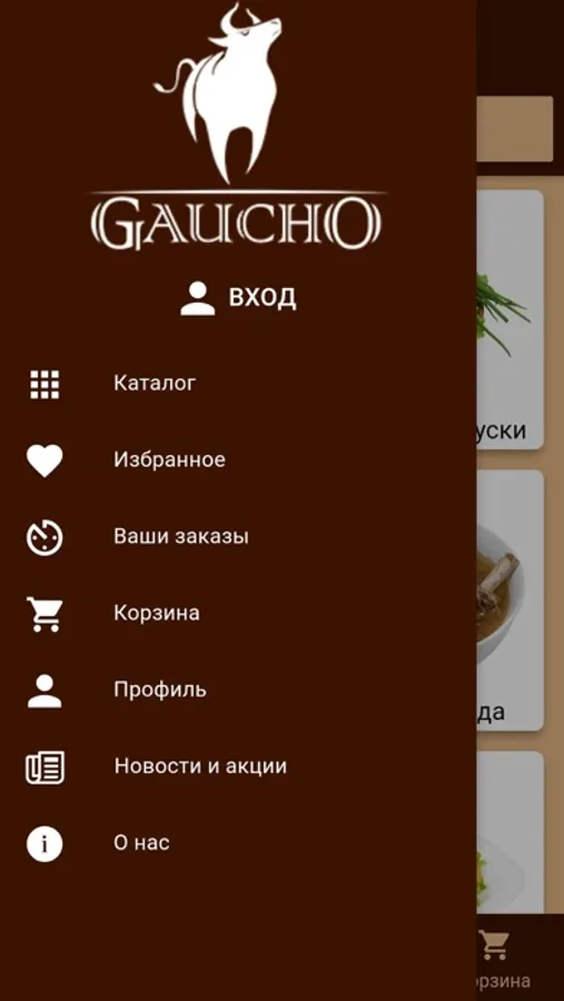 Gaucho - бесплатное приложение для оформления заказов на доставку блюд от заведения «Gaucho»