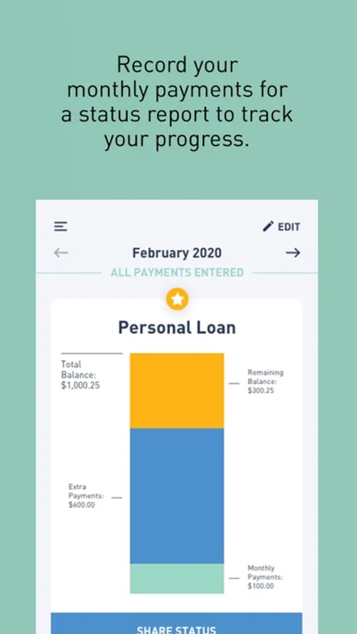Create printable debt-free charts. Choose between two styles: a blank chart where you can fill in your own information or a chart where the app generates all your payments. You'll be tracking your debt-free journey in no time!