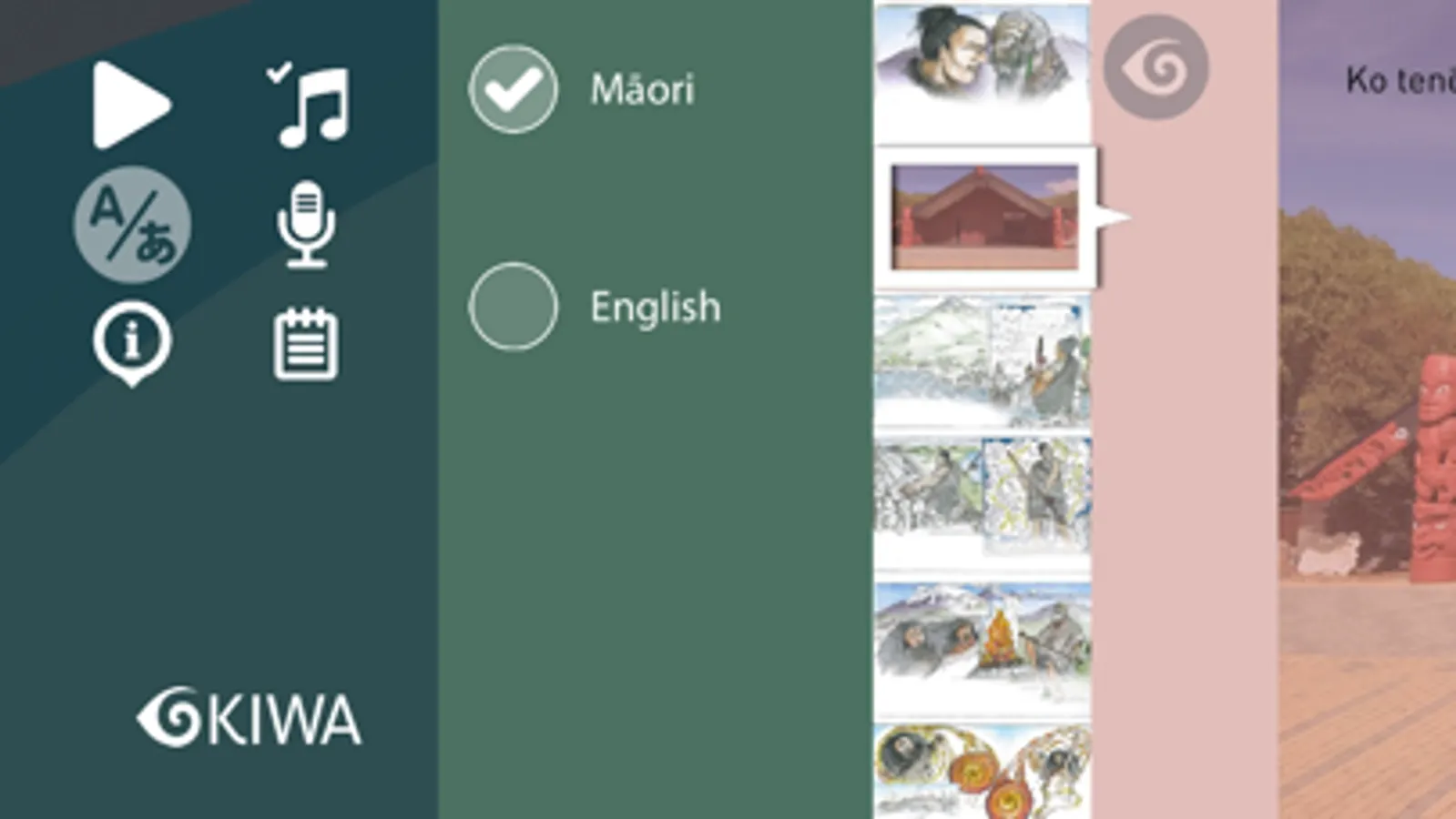 He taki kōrero, he kupu, he atanga kaiwhakamahi kei tēnei KIWA App ki ngā reo e whai ake nei: