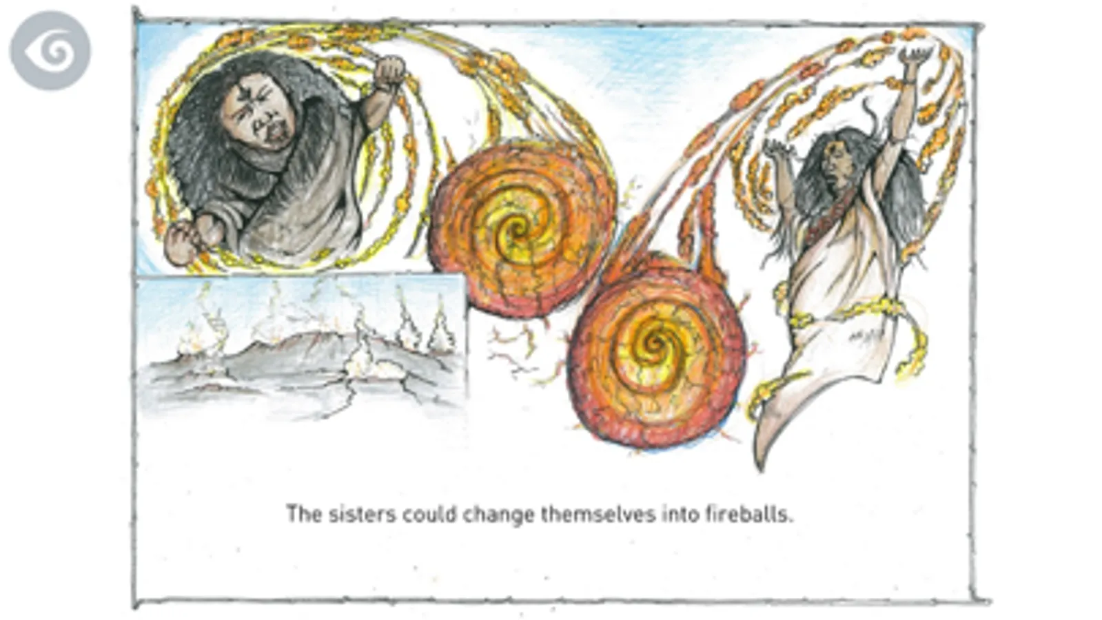 Ka whakawhāiti tēnei rauemi i ngā whakaaro pakiwaitara mai i Te Komiti Mātauranga o Ngāti Wheke. Ko te pakiwaitara e kōrerohia ana e te hapū o Ngāti Wheke e pā ana ki te maunga e titiro iho ana ki runga i te whenua o Rāpaki, arā ko Te Poho o Tamatea Pōkai Whenua maunga. Ko tēnei ingoa i ahu mai i tētahi kaitorotoro, ko Tamatea Pōkai Whenua tōna ingoa. E kī ana te kōrero i piki ake ia ki te tihi o te maunga nei ka tuku karakia me te inoi anō ki tētahi tohunga kia tukua mai he ahi hei whakamahana i tōna iwi. Ka kitea tonutia ngā ingoa e pā ana ki ngā haerenga o Tamatea i roto i te takiwā o Ngāti Wheke. Ko tēnei kōrero he kōrero mō Tamatea me tōna tipuna, a Ngātoroirangi. I ngā wā i hiahia tautoko a Tamatea, ka tukuna atu e Ngātoroirangi te ahi ki te Waipounamu kia ora ai a Tamatea me tōna iwi.