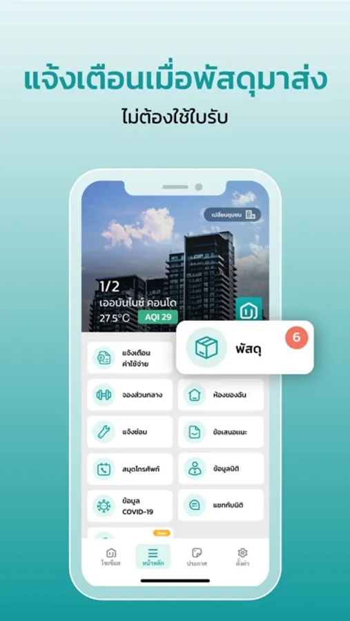 * รับแจ้งเตือนพัสดุ และรับพัสดุง่าย ๆ ผ่านแอปฯ