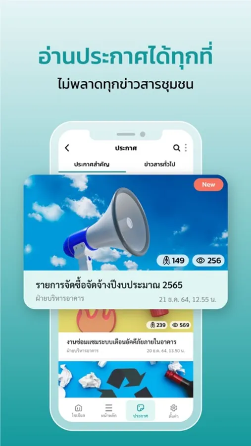 * ไม่พลาดทุกข่าวสารในชุมชน และแชทหาฝ่ายบริหารได้จบในแอปฯเดียว