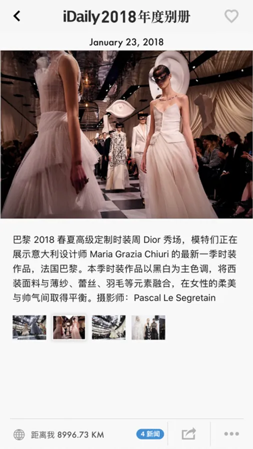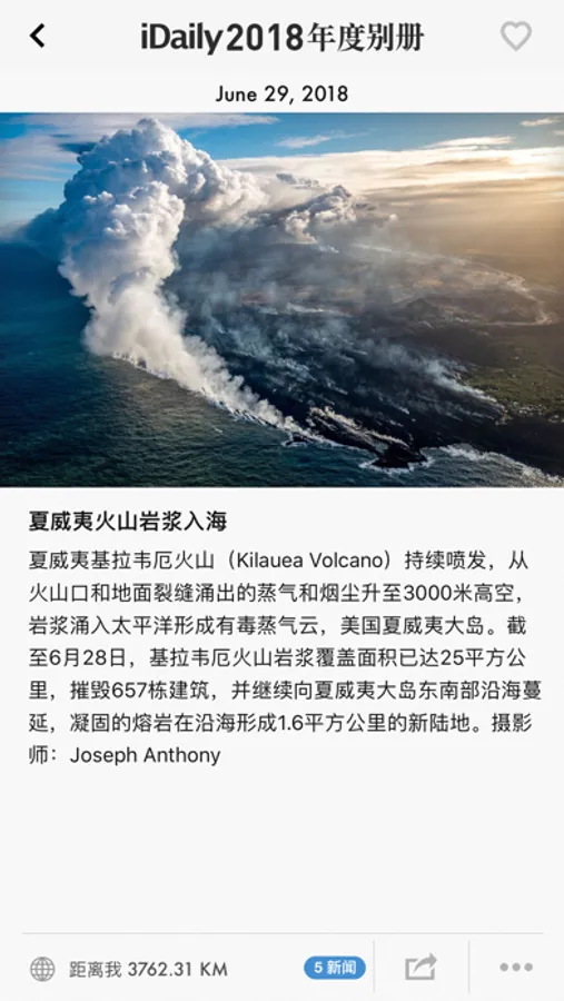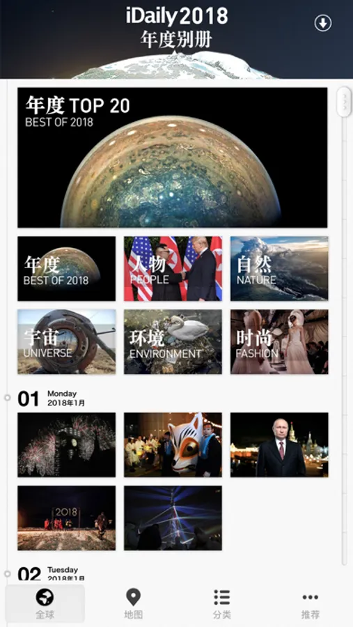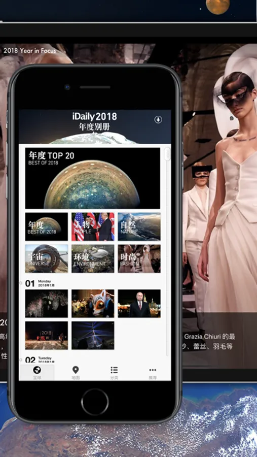 每一天,我们从全球超过 50000 张新闻图片中选出10个最能够拓展视野、打动人心的视觉记录。一年 365 天,你所看到的「iDaily · 2018 年度别册」即是这 1500 万张新闻图片中最出色的 3000 个画面,3000 个瞬间。